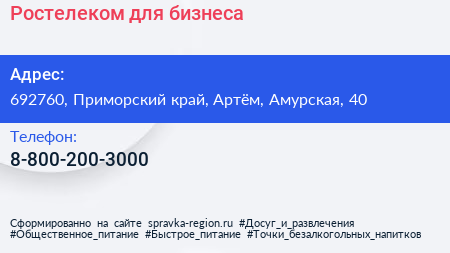 Ростелеком для бизнеса по адресу 692760, Приморский край, Артём, Амурская, 40 в дальнейшем Организация, размещена в следующих категориях: