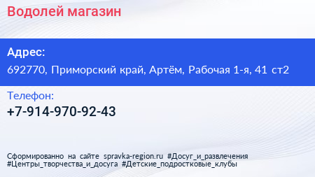Водолей, магазин по адресу 692770, Приморский край, Артём, Рабочая 1-я, 41 ст2 в дальнейшем Организация, размещена в следующих категориях: