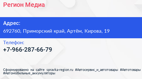 Регион Медиа по адресу 692760, Приморский край, Артём, Кирова, 19 в дальнейшем Организация, размещена в следующих категориях: