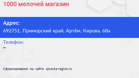 1000 мелочей, магазин по адресу 692751, Приморский край, Артём, Кирова, 68а в дальнейшем Организация, размещена в следующих категориях: