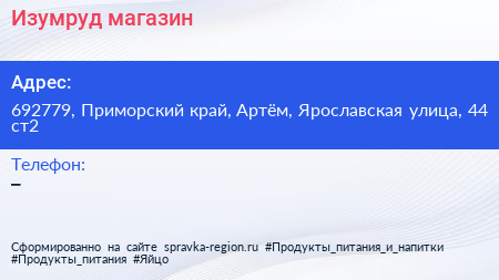 Изумруд, магазин по адресу 692779, Приморский край, Артём, Ярославская улица, 44 ст2 в дальнейшем Организация, размещена в следующих категориях: