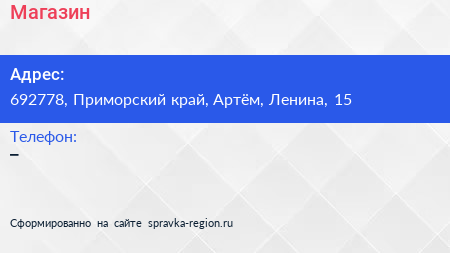 Магазин по адресу 692778, Приморский край, Артём, Ленина, 15 в дальнейшем Организация, размещена в следующих категориях: