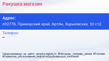 Ракушка, магазин по адресу 692778, Приморский край, Артём, Харьковская, 10 ст2 в дальнейшем Организация, размещена в следующих категориях: