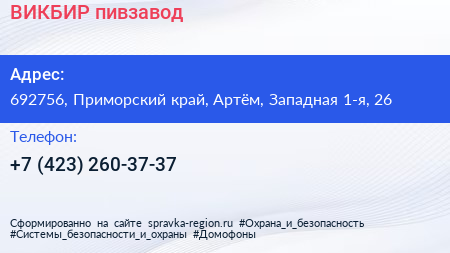 ВИКБИР, пивзавод по адресу 692756, Приморский край, Артём, Западная 1-я, 26 в дальнейшем Организация, размещена в следующих категориях: