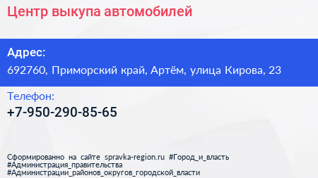 Центр выкупа автомобилей по адресу 692760, Приморский край, Артём, улица Кирова, 23 в дальнейшем Организация, размещена в следующих категориях: