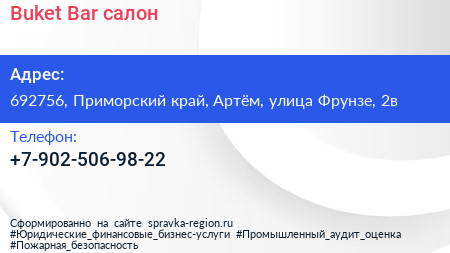 Buket Bar, салон по адресу 692756, Приморский край, Артём, улица Фрунзе, 2в в дальнейшем Организация, размещена в следующих категориях: