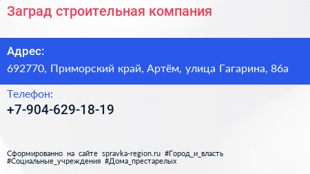 Заград, строительная компания по адресу 692770, Приморский край, Артём, улица Гагарина, 86а в дальнейшем Организация, размещена в следующих категориях: