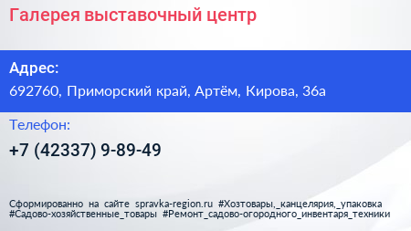 Галерея, выставочный центр по адресу 692760, Приморский край, Артём, Кирова, 36а в дальнейшем Организация, размещена в следующих категориях: