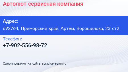 Автолют, сервисная компания по адресу 692764, Приморский край, Артём, Ворошилова, 23 ст2 в дальнейшем Организация, размещена в следующих категориях: