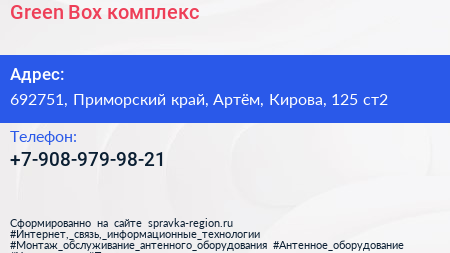Green Box, комплекс по адресу 692751, Приморский край, Артём, Кирова, 125 ст2 в дальнейшем Организация, размещена в следующих категориях: