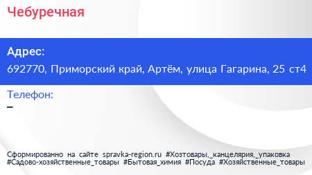 Чебуречная по адресу 692770, Приморский край, Артём, улица Гагарина, 25 ст4 в дальнейшем Организация, размещена в следующих категориях:
