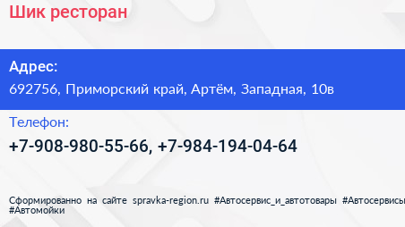 Шик, ресторан по адресу 692756, Приморский край, Артём, Западная, 10в в дальнейшем Организация, размещена в следующих категориях: