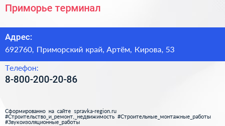 Приморье, терминал по адресу 692760, Приморский край, Артём, Кирова, 53 в дальнейшем Организация, размещена в следующих категориях: