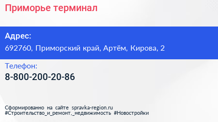Приморье, терминал по адресу 692760, Приморский край, Артём, Кирова, 2 в дальнейшем Организация, размещена в следующих категориях: