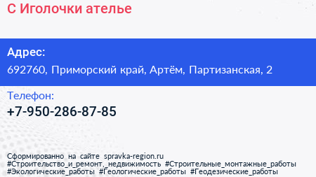 С Иголочки, ателье по адресу 692760, Приморский край, Артём, Партизанская, 2 в дальнейшем Организация, размещена в следующих категориях: