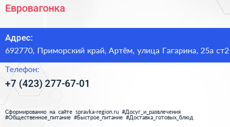 Евровагонка по адресу 692770, Приморский край, Артём, улица Гагарина, 25а ст2 в дальнейшем Организация, размещена в следующих категориях: