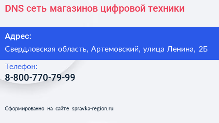 DNS, сеть магазинов цифровой техники по адресу Свердловская область, Артемовский, улица Ленина, 2Б в дальнейшем Организация, размещена в следующих категориях: