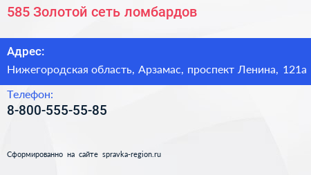 585*Золотой, сеть ломбардов по адресу Нижегородская область, Арзамас, проспект Ленина, 121а в дальнейшем Организация, размещена в следующих категориях: