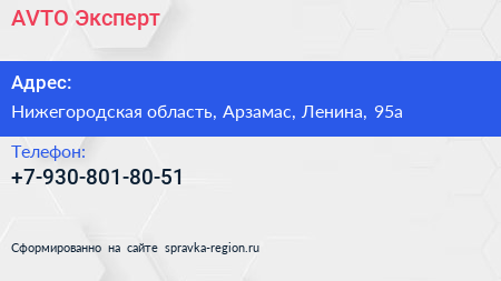 AVTO Эксперт по адресу Нижегородская область, Арзамас, Ленина, 95а в дальнейшем Организация, размещена в следующих категориях: