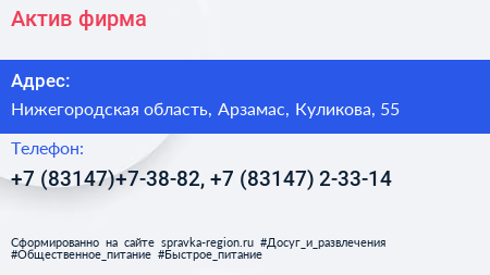 Актив, фирма по адресу Нижегородская область, Арзамас, Куликова, 55 в дальнейшем Организация, размещена в следующих категориях: