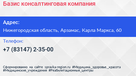 Базис, консалтинговая компания по адресу Нижегородская область, Арзамас, Карла Маркса, 60 в дальнейшем Организация, размещена в следующих категориях: