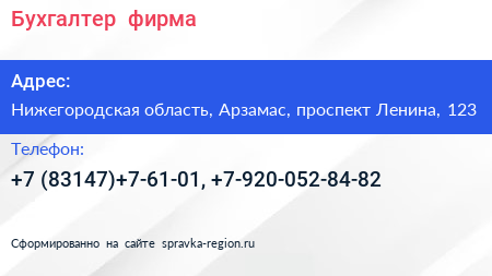Бухгалтер+, фирма по адресу Нижегородская область, Арзамас, проспект Ленина, 123 в дальнейшем Организация, размещена в следующих категориях:
