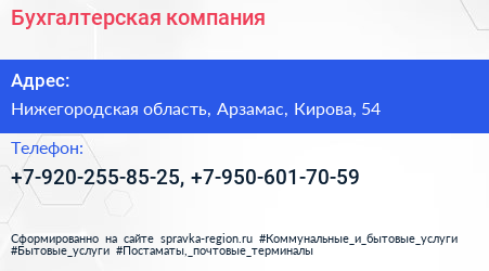 Бухгалтерская компания по адресу Нижегородская область, Арзамас, Кирова, 54 в дальнейшем Организация, размещена в следующих категориях: