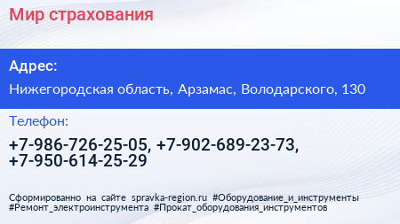 Мир страхования по адресу Нижегородская область, Арзамас, Володарского, 130 в дальнейшем Организация, размещена в следующих категориях: