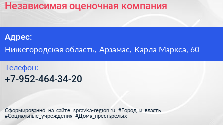 Независимая оценочная компания по адресу Нижегородская область, Арзамас, Карла Маркса, 60 в дальнейшем Организация, размещена в следующих категориях: