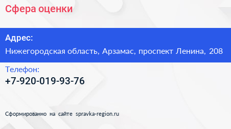 Сфера оценки по адресу Нижегородская область, Арзамас, проспект Ленина, 208 в дальнейшем Организация, размещена в следующих категориях: