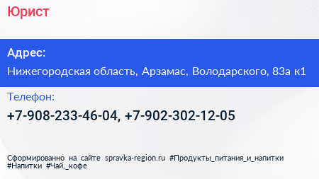 Юрист + по адресу Нижегородская область, Арзамас, Володарского, 83а к1 в дальнейшем Организация, размещена в следующих категориях: