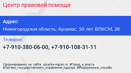 Центр правовой помощи по адресу Нижегородская область, Арзамас, 50 лет ВЛКСМ, 28 в дальнейшем Организация, размещена в следующих категориях: