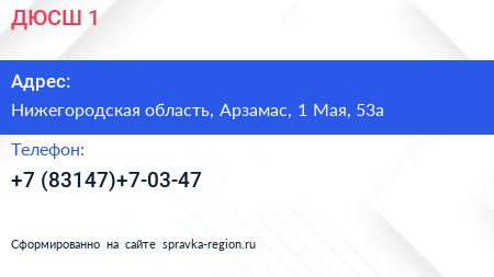 ДЮСШ №1 по адресу Нижегородская область, Арзамас, 1 Мая, 53а в дальнейшем Организация, размещена в следующих категориях: