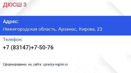 ДЮСШ №3 по адресу Нижегородская область, Арзамас, Кирова, 23 в дальнейшем Организация, размещена в следующих категориях: