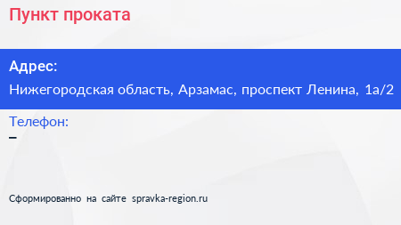 Пункт проката по адресу Нижегородская область, Арзамас, проспект Ленина, 1а/2 в дальнейшем Организация, размещена в следующих категориях: