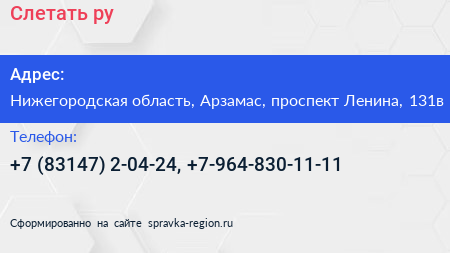 Слетать.ру по адресу Нижегородская область, Арзамас, проспект Ленина, 131в в дальнейшем Организация, размещена в следующих категориях: