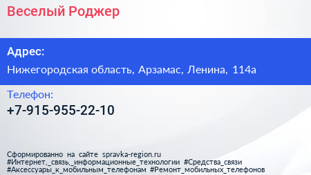 Веселый Роджер по адресу Нижегородская область, Арзамас, Ленина, 114а в дальнейшем Организация, размещена в следующих категориях: