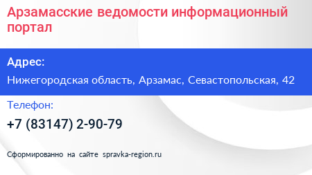 Арзамасские ведомости, информационный портал по адресу Нижегородская область, Арзамас, Севастопольская, 42 в дальнейшем Организация, размещена в следующих категориях: