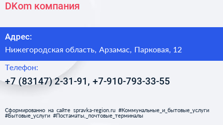 DKom, компания по адресу Нижегородская область, Арзамас, Парковая, 12 в дальнейшем Организация, размещена в следующих категориях: