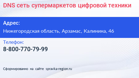 DNS, сеть супермаркетов цифровой техники по адресу Нижегородская область, Арзамас, Калинина, 46 в дальнейшем Организация, размещена в следующих категориях: