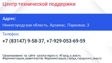 Центр технической поддержки по адресу Нижегородская область, Арзамас, Парковая, 3 в дальнейшем Организация, размещена в следующих категориях: