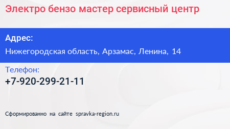 Электро-бензо-мастер, сервисный центр по адресу Нижегородская область, Арзамас, Ленина, 14 в дальнейшем Организация, размещена в следующих категориях: