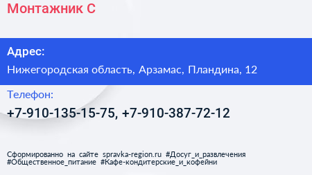 Монтажник-С по адресу Нижегородская область, Арзамас, Пландина, 12 в дальнейшем Организация, размещена в следующих категориях:
