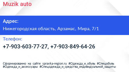 Muzik-auto по адресу Нижегородская область, Арзамас, Мира, 7/1 в дальнейшем Организация, размещена в следующих категориях: