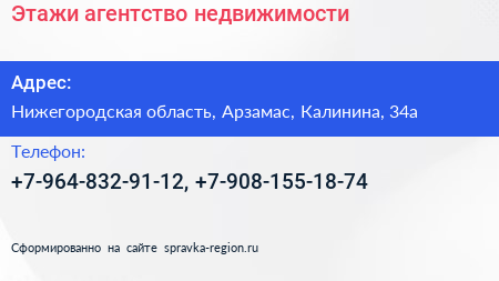 Этажи, агентство недвижимости по адресу Нижегородская область, Арзамас, Калинина, 34а в дальнейшем Организация, размещена в следующих категориях: