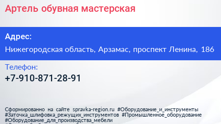 Артель, обувная мастерская по адресу Нижегородская область, Арзамас, проспект Ленина, 186 в дальнейшем Организация, размещена в следующих категориях: