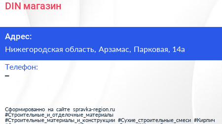 DIN, магазин по адресу Нижегородская область, Арзамас, Парковая, 14а в дальнейшем Организация, размещена в следующих категориях: