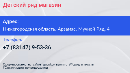 Детский ряд, магазин по адресу Нижегородская область, Арзамас, Мучной Ряд, 4 в дальнейшем Организация, размещена в следующих категориях: