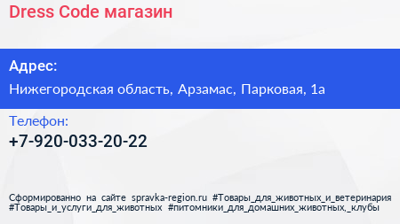 Dress-Code, магазин по адресу Нижегородская область, Арзамас, Парковая, 1а в дальнейшем Организация, размещена в следующих категориях: