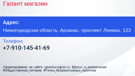 Галант, магазин по адресу Нижегородская область, Арзамас, проспект Ленина, 123 в дальнейшем Организация, размещена в следующих категориях: